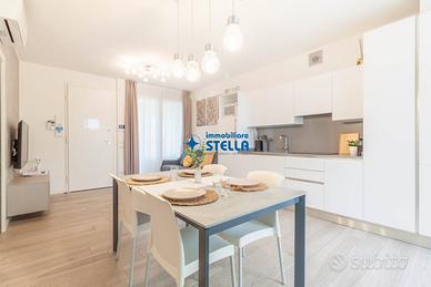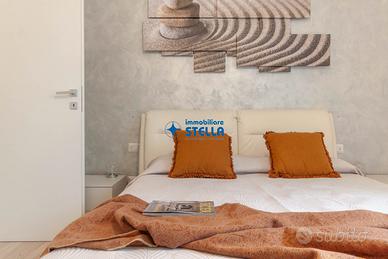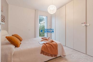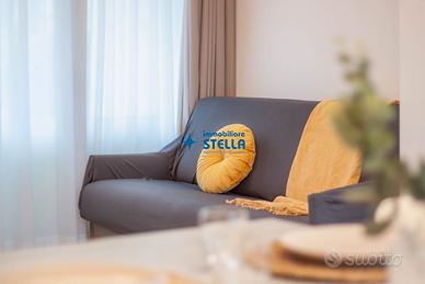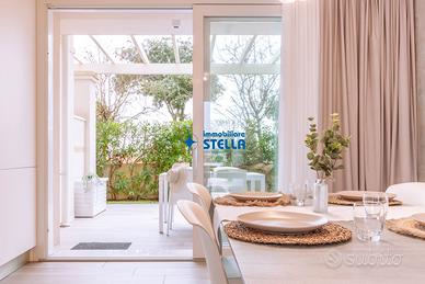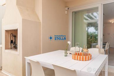 Appartamento al piano terra arredato modernamente e composto da ingresso su patio di proprietà che conduce a un luminoso ed ampio soggiorno con divano e angolo cottura attrezzato. Dal disimpegno si accede al bagno finestrato con box doccia, alla camera matrimoniale e alla camera con un letto singolo e un letto a castello. All'esterno uno spazio attrezzato con tavolo e sedie permette di pranzare e cenare e di trascorrere le giornate estive in pieno relax. APPARTAMENTO PER FAMIGLIE CIR: 027019-LOC-09814 CIN: IT027019B4NHOJ85XL C02