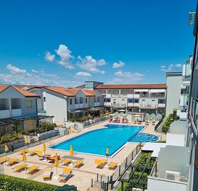 Appartamento per 4/5 persone su residence con piscina. Composto di cucina con divano letto, camera con letto matrimoniale e secondo letto matrimoniale su soppalco, bagno con finestra e box doccia, piccolo scoperto con tavolo e sedie per mangiare fuori. Lavatrice, lavastoviglie e climatizzatore. Disponibile solo da lunedì 29 giugno a sabato 4 luglio mattina, dal'11 al 18 luglio e dal 27 luglio al 2 agosto Trenino gratuito che porta in spiaggia, mini-club, attività sportive ed animazione serale. Posto spiaggia con ombrellone e 2 lettini incluso CIN IT027005C2TJKYGSVD CIR 027005-LOC-07649
