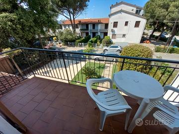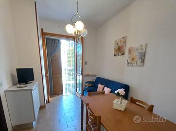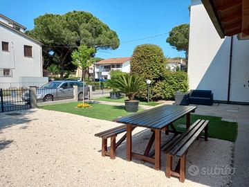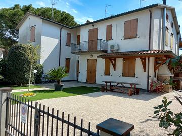 Lido di Dante. Villa Beatrice. Un moderno appartamento in villetta con aria condizionata/pompa di calore in posizione centrale, vicino ai negozi e a 150 m dalla spiaggia. L' unità al 1°piano è adatta a famiglie con bimbi o gruppi di 4/5 persone. L'abitazione fresca e accogliente si compone di soggiorno con angolo cottura, camera matrimoniale, camera con letto a castello, bagno con box doccia, balcone attrezzato con tavolo e sedie da esterno. Nel giardino piuttosto grande, gli ospiti dispongono del posto auto, della lavatrice e del caminetto per cucinare succulente grigliate. L'abitazione è dotata di forno, televisione, zanzariere e inferriate. Animali di piccola taglia sono ammessi. ULTIME Disponibilità: Appartamento primo piano 27/06 - 11/07 Tariffa euro 1.090 11/07 - 25/07 Tariffa euro 1.240 compreso locazione, consumi, set di cortesia. Altre offerte e disponibilità per Lido di Dante, Lido di Classe e Lido di Savio in agenzia. Ag. Federica Vacanze.