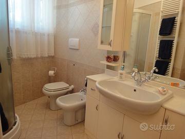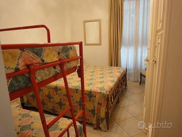 MARINA DI PIETRASANTA, in zona centrale, a 50 METRI DALLA SPIAGGIA di sabbia finissima e dai negozi di prima necessità (tutto raggiungibile con pochissimi passi a piedi), affittasi appartamento 1° Piano completamente ristrutturato e ottimamente arredato, adatto ad ospitare un massimo di 6/7 persone e composto da: un'ampia e luminosissima camera matrimoniale con balcone fronte mare ed aria condizionata, una seconda camera matrimoniale con in più un letto a castello ( per un totale di 6 posti letto ) corredata di aria condizionata, un' ampia e luminosa sala_soggiorno con t.v. a led via cavo e parabola, d.v.d, tavolo da pranzo e mobili in legno, divano letto e balcone con poltroncine per relax, aria condizionata, cucina componibile in massello, accessoriata e corredata di tutto il necessario ( pentole, posate, piatti e bicchieri, utensili vari, tavola e ferro da stiro ecc..), praticamente manca solo la biancheria, rifinita di balcone con lavatoio e stendibiancheria, bagno con box-doccia. Dotazioni: piano cottura a gas, forno elettrico ventilato, frigorifero con freezer, lavatrice, lavatoio x lavare a mano, aria condizionata inverter in 4 stanze e riscaldamento autonomo, videocitofono, infissi esterni nuovissimi ad alto abbattimento acustico e termico, tre balconi. Posto all'ingresso piano terra per bicicletta o passeggino. L'appartamento si adatta ad ospitare oltre a famiglie che desiderano tutto a portata di mano anche famiglie con bambini piccoli o persone anziane, vista proprio la comodità di poter raggiungere oltre che la spiaggia anche tutto il necessario semplicemente spostandosi con pochissimi passi a piedi e non necessariamente con la macchina o in bicicletta.