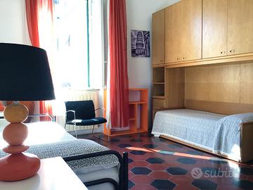 trilocale al primo piano di un antico palazzo a 100 metri dal mare due ampie camere matrimoniali e doppi servizi, può ospitare fino a 7 persone. giardino condominiale con salottino, tavoli e barbecue. rastrelliera per le bici e ampio baule per lasciare a piano terra l'attrezzatura da mare. disponibile su richiesta anche lettino a cancelli e seggiolone