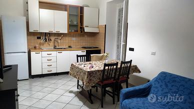 Appartamento indipenente, no condominio, piano terra, di 80 mq. , 1 bagno, 2 camere da letto, 5 posti letto, soggiorno e cucina a vista. Completa la proprietà una corte esterna arredata, dove è possibile mangiare.