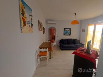 L'alloggio, molto bello e luminoso, è stato completamente e finemente ristrutturato ed è composto da: ingresso, soggiorno con divano letto matrimoniale, cucina abitabile, camera da letto matrimoniale, bagno con doccia e balcone. Situato in un elegante condominio nel centro del paese, a circa 100 metri dal mare e a 50 da tutti i servizi (supermercato, panetteria, generi alimentari, bar), l'alloggio è posto al primo piano con ascensore e non vi sono barriere architettoniche per l'accesso anche delle persone meno abili. Completamente ben arredato ed accessoriato, dispone di ogni confort ed è l'ideale per 4 persone (possibilità di letto aggiuntivo per i più piccini).