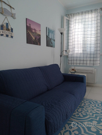 L'appartamento può ospitare fino a 6 persone, preferibilmente 4 adulti e 2 bambini, è formato da una zona living con cucina e divano matrimoniale, da una camera da letto matrimoniale, una cameretta con letto a castello, dispone di un balconcino con tavolino pieghevole e sgabelli e due finestre che rendono l'ambiente luminoso e ben arieggiato.