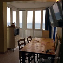 Elegante attico frontemare ristrutturato di recente. Trilocale con ampio terrazzo vivibile, aria condizionata, dotato di accessori. Affittasi dal 16 al 30 giugno €900.