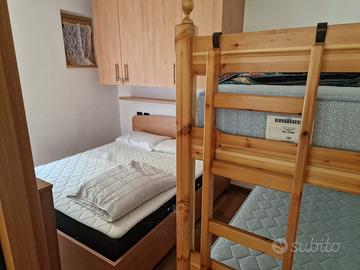 Disponibilità: luglio-agosto. Bilocale molto luminoso al secondo piano con ascensore composto da cottura soggiorno, camera con letto matrimoniale e letto a castello, bagno, balcone panoramico. Completo di posto auto coperto. NO ANIMALI Riferimento annuncio: 0079 Per informazioni e preventivi non esitate a contattarci!
