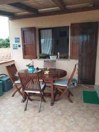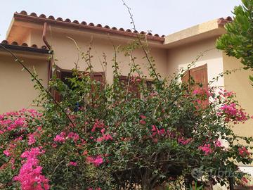 Affittasi per Agosto 2025,.all 'interno del complesso del villaggio di Rena Majore, luminoso trilocale in Via dell' Oleandro composto da : ampio soggiorno con angolo cottura completamente attrezzato, due camere da letto (una matrimoniale ed una con due letti = 4 posti letto), bagno con cabina doccia + antibagno e lavatrice da 6 kg. . Bellissima veranda coperta insiste su terrazzo di 12 mq. con tavolo in tek x 6 persone e splendida vista. Doppia porta d'ingresso : al p.t. in legno rinforzato e al 1° p. in ferro zincato. Giardino privato in comproprietà di 85 mq. ben piantumato con doccia esterna con sola acqua fredda. Due impianti di climatizzazione : nel soggiorno e nella camera matrimoniale, cameretta con impianto di raffrescamento . Posto auto nella piazzetta condominiale.