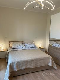 Completamente ristrutturato luglio 2025 con finiture di pregio, si affitta per brevi periodi luminoso appartamento di 140 m al primo piano con balconi, climatizzato, riscaldamento autonomo, 3 tv 55 pollici, 2 camere matrimoniali con ampi armadi, uno studio e salotto con divani matrimoniali, 2 bagni eleganti, cucina attrezzata con lavastoviglie, lavanderia con lava asciuga, attrezzato per neonati con culla,fasciatoio, seggiolone, parcheggio privato, area barbecue