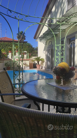 MARINA DI MASSA: in elegante VILLA, in PIENO CENTRO, a 5 MINUTI A PIEDI dal mare ( 300 MT reali ), affittasi per la stagione estiva a settimane ( da sabato a sabato ) GRANDE BILOCALE di 60 MQ con PISCINA PRIVATA, accesso indipendente, fresco e luminoso, situato al piano rialzato e così composto: cucina, ampio soggiorno con vista sulla piscina, zona notte con corridoio, una grande camera con letto matrimoniale e divano con 2 letti singoli e vista sul giardino, bagno grande finestrato con vasca-doccia.