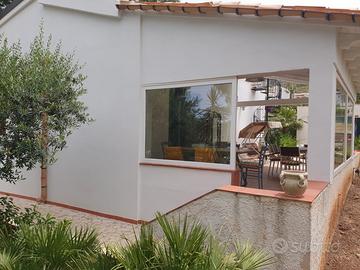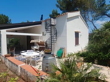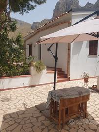 A San Vito Lo Capo in località Makari affittasi settimanalmente villetta circondata dal verde su quattro lati con vista panoramica sul Golfo di Cofano, la casa, appena ristrutturata, infissi nuovi, zanzariere, dispone di due camere da letto, una matrimoniale e una cameretta con un letto singolo e un letto a castello (totale 5 posti letto), ampio soggiorno, veranda coperta, spazi esterni, terrazzino al primo piano con lettini prendisole, climatizzata, tvsat, wi-fi, facilità di parcheggio auto davanti casa, posto bici e moto all'interno della proprietà, microonde, lavastoviglie, lavatrice, forno e barbecue. Possibile raggiungere lo Zingaro sentiero ovest a poche centinaia di metri, le calette di Makari e Baia Santa Margherita a breve distanza, il centro abitato di San vito a 5 minuti di auto. Per una vacanza rilassante lontani dal caos. Cir: 19081020C252758 Cin: IT081020C2HDRBE5ZG