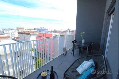 MAGGIO ATTICO 3 CAMERE CON DOPPI SERVIZI P.ZZA MILANO RIF.9066 AFFITTIAMO PER PERIODI BREVI nuovissimo appartamento ATTICO ubicato all'interno di un' elegante palazzina tra Piazza Milano\Torino a soli 150 metri dalla spiaggia. L'appartamento finemente arredato si sviluppa su due livelli, al piano terra troviamo un ampio soggiorno open space con moderna cucina a vista, ampia terrazza attrezzata con tavolo e salottino e in ultimo bagno finestrato con maxi box doccia. Al secondo livello si accede alla zona notte composta da due camere matrimoniali in sottotetto dotate di velux , terza cameretta con letto a castello e secondo bagno con box doccia. L'appartamento è dotato di tutti i confort : impianto di climatizzazione canalizzato, lavatrice, lavastoviglie, microonde, wifi illimitato , posto auto assegnato. NO ANIMALI DOMESTICI VISITE IMMOBILE SOLO SU APPUNTAMENTO 0421 91800 - sfera@agenziasfera.it. Foto e dettagli : www.agenziasfera.it . APE: CODICE:54112/2022 CLASSE ENERGETICA A3 CODICE ALLOGGIO: 027019-LOC-10117 CIN: IT027019C2I3FFRB8D RIFERIMENTO: 9066 CLASSE ENERGETICA: