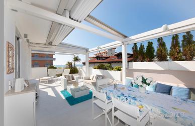 Affittiamo magnifico appartamento nella zona più rinomata di Jesolo fra le due piazze principali piazza Brescia e piazza Mazzini, a 20 metri dalla spiaggia, l'appartamento si trova in una palazzina di poche unità al terzo piano (no ascensore) in un accesso al mare. 3 CAMERE MATRIMONIALI 2 BAGNI STUPENDA TERRAZZA ESCLUSIVA VISTA MARE - Cucina accessoriata con frigo, freezer, forno microonde, forno, lavastoviglie - Tv - Impianto di climatizzazione - Lavatrice - Posto auto RIFERIMENTO APPARTAMENTO DOMINIQUE 027019-LOC-07654