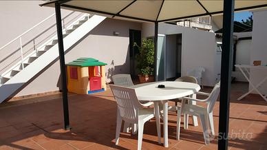 Affittasi mansarda al primo piano di una villetta bifamiliare a Casuzze a 700 metri dalla spiaggia. È composta da cucina soggiorno con divano letto, camera matrimoniale, bagno. Ogni ambiente è climatizzato. Può ospitare 2 persone max 3. Al piano terra ad uso esclusivo doppio servizio/lavanderia, ampia veranda attrezzata con gazebo con tavolo e sedie per mangiare fuori, barbecue, dondolo.