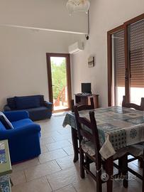 Appartamento primo piano max 4 posti letto. Distante 200 m dalla costa situato al piano primo di casa singola trifamiliare. Dispone di aria condizionata nel soggiorno, con flusso diretto verso il corridoio dove si trovano le camere da letto. L'alloggio comprende una camera matrimoniale e una camera con due letti singoli, un soggiorno, un cucinino, un bagno con doccia e zanzariere su tutte le finestre. All'esterno, al piano terra, è disponibile un piccolo cortile con doccia esterna, comodo al rientro dalla spiaggia, lavatrice in condivisione e un mini barbecue. Connessione WiFi