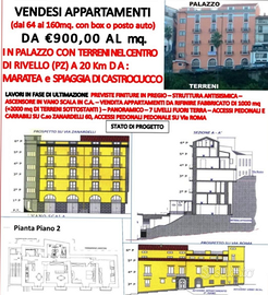In meraviglioso edificio (homo nobilis - palazzo florenzano - corso zanardelli 60 ove giungere con auto, con accesso da vano scale anche direttamente su via roma - centro storico pedonale a pochissimi metri da piazza centrale) palazzo ristrutturato e con ascensore modernissimo, nel centro storico di Rivello (PZ)...Si precisa che Rivello è direttamente sulla strada a scorrimento veloce e quindi più facilmente raggiungibile rispetto a Maratea. Fitto nuovissimo appartamento top -ristrutturato + mobili nuovi : ultimo piano, vista mozzafiato su paese e panorama, terrazzino privato (possibilità di utilizzo occasionale e su richiesta anche di altro terrazzo di unità contigua), camera matrimoniale grande, soggiorno con cucina con comodissimo divano letto grande matrimoniale + bagno con lavatrice, aria condizionata o riscaldamento con radiatori, tv flat 32 pollici in salone e tv grande in camera da letto, wi-fi , ogni comodità e accessorio, deposito al piano, posto auto.