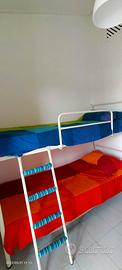 Al piano superiore camera matrimoniale cameretta con letto a castello,bagno con doccia,ci sono tre balconi dove poter mangiare all'aperto.