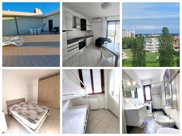 MARE ALBA A. SETTIMANE GIUGNO LUGLIO e (AGOSTO LIBERO DA 16 a 30 ) VACANZA VISTA MARE PREZZI MODICI e USO BICI GRATIS AFFITTO MARE ALBA ADRIATICA (BANDIERA BLU, SPIAGGE ATTREZZATE E LIBERE, PISTA CICLABILE E PEDONALE CHE COSTEGGIA MARE, PARCHI GIOCHI COMUNALI PER BAMBINI, AFFIITO SETTIMANALE IN ZONA CENTRALE RESIDENZIALE E TURISTICA CON TUTTI I SERVIZI, 2 ATTICI CLIMATIZZATI, TRILOCALE E BILOCALE ENTRAMBI 4 POSTI LETTO, CON VISTA PANORAMICA DELLA CITTA', MARE E MONTAGNE, DOTATI TV SMART-INTERNET 43", GRANDISSIMO TERRAZZO AD USO ESCLUSIVO, ACCESSO DA CUCINA E CAMERA LETTO, BICI A DISPOSIZIIONE GRATUITA A RICHIESTA FORNISCO SEGGIOLINI BIMBI, PIANO 6° CON ASCENSORE, TERRAZZO PANORAMICO DOTATO TAVOLO SEDIE E 2 LETTINI MARE. PALAZZINA ELEGANTE IN BELLISSIMO QUARTIERE NUOVO IN ZONA TRANQUILLA, CON MOLTIISSIMI PARCHEGGI LIBERI NESSUNO A PAGAMENTO E GRANDE SUPERMERCATO TIGRE/JUMBO A POCHI METRI. DISTANTE A PIEDI O BICI DALLA SPIAGGIA 700 METRI, PASSANDO DALLA CENTRALISSIMA VIA ABRUZZO O VIA VERONA. PER PROBLEMI ALLERGICI NON POSSIAMO ACCETTARE ANIMALI DOMESTICI. PREZZI A PARTIRE DA EURO 250. IT067001C2Q9ZKAQT9