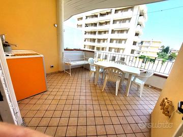 ELEGANTE PALAZZINA IN ZONA TRANQUILLA, CIRCONDATA DA N.3 PARCHEGGI LIBERI, DISTANTE 250 METRI DALLA SPIAGGIA, COMPOSTO DA AMPIO SOGGIORNO CUCINA OPENSPACE, DOTATA DI UN GRANDE TERRAZZO DOTATO DI LAVABO CON LAVATRICE ALL'INTERNO, PIÙ TAVOLO PER MANGIARE FUORI. NELLA ZONA NOTTE UNA CAMERA MATRIMONIALE E UNA CAMERA DOPPIA CON 2 LETTI SINGOLI OPPURE TRASFORMABILE IN MATRIMONIALE, UN BAGNO. E DUE BALCONI.
