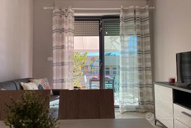 L'appartamento si trova in un elegante stabile di recente costruzione, direttamente sul Lungomare Trento a Roseto degli Abruzzi, a soli 30 metri dalla spiaggia di sabbia fine e dal mare dai bassi fondali per chi cerca una vacanza all'insegna del comfort e del relax. Mare Blu 2: cosa troverai? - Secondo piano con ascensore - Terrazzo attrezzato con tavolo e sedie per piacevoli pranzi e cene all'aperto - Soggiorno con angolo cottura - Camera matrimoniale + Cameretta con letto a castello (4 posti letto) - Bagno con box doccia - Arredamento curato e accogliente - Posto auto riservato nel seminterrato della palazzina Principali servizi: - Animali ammessi (piccola taglia - supplemento euro 50/soggiorno) - Aria condizionata inclusa - TV - Carta sconti per servizi locali - Lavastoviglie - Lavatrice Dove si trova? Via Palermo, angolo Lungomare Trento, nel cuore di Roseto degli Abruzzi, ideale per passeggiate serali, ristoranti tipici ristoranti e bar con vista sul mare. Se cerchi una meta tranquilla, accogliente ed autentica, Roseto degli Abruzzi è la destinazione per la tua vacanza! Curiosità Per gli amanti del ciclismo, Roseto offre un percorso lungo la Ciclovia Adriatica, per le escursioni si può raggiungere facilmente il Parco Nazionale del Gran Sasso e Monti della Laga, e tra gli sport acquatici non possono mancare windsurf e vela. Il mare ti aspetta! Prenota ora la tua vacanza!