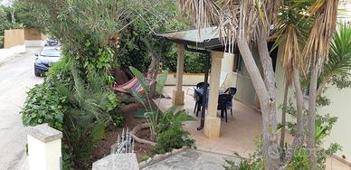 Immerso nel verde villino condizionato a 100m dalla spiaggia nei pressi del Camping riva di Ugento zona villaggi turistici Victor Village, Robinson Club,Vivosa Resort,Astor Hotel immerso nella natura nel parco di lidopineta composta da camera matrimoniale stanzetta cucina bagno con doppia doccia interna ed esterna portico frontale giardino e posto auto,per una vacanza rilassante a pochi passi dalla splendida spiaggia finissima con un mare blu cobalto cristallino limpido dai fondali ricchi di vita e colori e da una pineta curata e attrezzata x ogni tipo di esigenza accettiamo prenotazioni per comitive,famiglie,coppie vi offriamo la struttura adeguata alle vostre esigenze si richiede massima serietà grazie