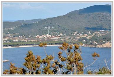 Appartamento trilocale (max 6p.letto) situato al piano terra di una villetta bifamiliare, proprietà completamente recintata e cancello elettrico, zona periferica tranquilla, 900 mt dalla spiaggia di sabbia di Marina di Campo, cucina abitabile e con divano letto da una piazza e mezzo, due camere matrimoniali di cui una con terzo letto e bagno privato, doppi servizi, zanzariere alle finestre delle camere, aria condizionata, spazio esterno esclusivo arredato con tavolo e sedie per mangiare all'aperto, codice sconto traghetto, barbecue, doccia anche esterna con acqua calda, parcheggio privato all'interno della proprietà, Wi-Fi, biciclette