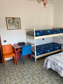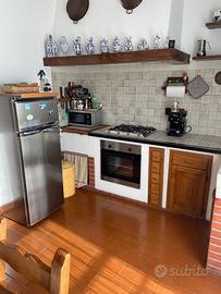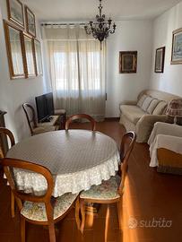 A Marina di Massa, via Bagnone, vicinissimo al mare, affitto appartamento ammobiliato, 80 mq ,classe energetica E , con soggiorno,due camere, cucina abitabile, due bagni, situato al secondo piano di una palazzina composta da tre appartamenti. Interno: ingresso su soggiorno composto da un grande divano, poltrona ,tavolo da pranzo rotondo con sedie , mobile libreria, vetrina e tv . Accesso diretto alla cucina abitabile in muratura con grande tavolo rettangolare in massello con robuste sedie abbinate . Forno a incasso , forno a microonde e frigorifero. Due ampie camere per un totale di sette posti letto , due bagni, di cui uno con servizi e vasca , l'altro, con lavandino più specchio, lavatrice e doccia. Ampio balcone angolare con tavolinetto e due sedie, cui si accede dalla cucina e dalle due camere . Marmi alle finestre ed infissi in alluminio con doppi vetri ed ante a ribalta, recentemente sostituiti . L'appartamento è dotato di lavatrice, fili stendibiancheria, asse e ferro da stiro, aspirapolvere, due tv , cassaforte a muro, portone blindato e posto bici coperto. Sono disponibili anche 2 biciclette .Esterno: giardino condominiale recintato, no posto auto interno . Posizione: la palazzina è inserita in un contesto molto tranquillo, ma in un punto strategico, a due passi dal centro e dal mare, vicinissima all'asilo comunale e alle scuole elementari e medie. Gli amici animali sono graditi, ma solo di piccola taglia.