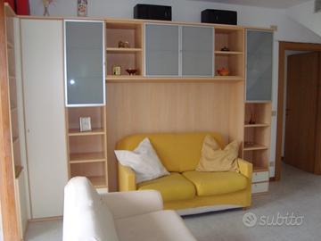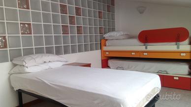 Affittasi appartamento in tranquillo condominio vicino al mare ed al centro, disposto su due piani. Al primo piano soggiorno, cucina abitabile, bagno, camera matrimoniale. Al secondo piano mansardato due camere da letto, e bagno. Completamento arredato con lavatrice e lavastoviglie. Disponibilità di aria condizionata, termo autonomo e posto auto in zona condominiale.