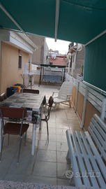 Casa difronte Piazza Duca e a pochi passi dal mare (esattamente 1 minuto A PIEDI). La casa presenta al piano terra una verandina attraverso la quale si accede alla prima stanza da letto, in cui sono presenti un letto singolo e un letto matrimoniale, tramite una porta si raggiunge la seconda stanza con un divano letto (matrimoniale) e un bagnetto di servizio. Una scala permette di raggiungere il piano superiore in cui vi si trovano: la cucina (fornita di cucina, frigo, lavello, tv), la sala da pranzo e il bagno (con doccia, servizi, lavatrice). Tutte le stanze sono dotate di ventola a soffitto. La casa ha un'ampia terrazza, che permette la visuale della piazza e nel contempo di trascorrere gradevoli serate in compagnia grazie alla numerosa presenza di pub, gelaterie e pizzerie vicine. Per gli amanti del relax, l'ampia terrazza, una sdraia, un giornale e la temperatura gradevole della città faranno sì che la propria vacanza risulti infinitamente gradevole. Per chi vuole "staccare la spina" e allontanarsi dalla routine quotidiana ha trovato il posto ideale.