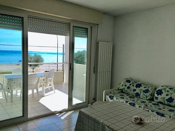Appartamento a 4 posti letto con camera matrimoniale, cucina soggiorno con divano a due letti, bagno, terrazzo fronte mare attrezzato per pranzo soggiorno all'aperto. Posto auto riservato, cantina ripostiglio, lavatrice, asse e ferro da stiro, tv, cassetta di sicurezza e Wi-Fi compresi nel prezzo.