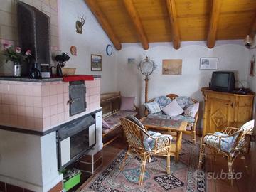 edilizia di montagna arredato e con ampio giardino adatto a famiglie con bambini. E' tipo mansarda ,al secondo piano di edificio a due piani in zona periferica di Moena ma in posizione panoramica ed avantaggiato nei servizi prossimi come per gli svincoli stradali che evitano il passaggio per il centro paese, spesso interdetto alle auto.