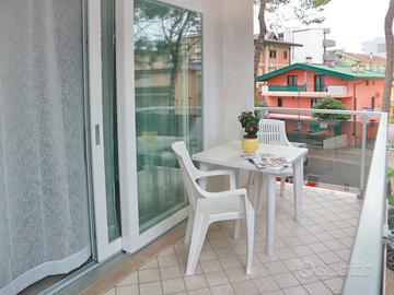 VIALE DEL BOSCO 3, LIGNANO SABBIADORO DISPONIBILE DA DOMENICA A DOMENICA DURANTE L'ALTA STAGIONE. Piccola palazzina in zona centrale vicino alla passeggiata pedonale serale. Ogni appartamento è completo di tutti gli accessori per un confortevole soggiorno, fra i quali televisione a climatizzatore . Ciascuna unità immobiliare dispone di un posto auto numerato. Lavanderia con lavatrice a disposizione ed uso gratuito dei nostri graditi ospiti. Ampio giardino recintato. Il servizio spiaggia non è compreso nel prezzo. Il bagno più vicino all'appartamento è il numero 10 (Delfino). Quadrilocale composto da un soggiorno con un divano, tv e microonde, cucinino separato, camera a tre letti (uno matrimoniale più uno singolo), camera doppia, camera singola, bagno con box doccia/bidet/wc ed un balcone arredato. Aria condizionata e pulizie finali sono compresi nel prezzo. Misure posto auto: 520X230X180. Questo appartamento NON e' stagionale. Si accettano SOLO FAMIGLIE, non gruppi di ragazzi. Per ulteriori informazioni e per conoscere le disponibilità vi preghiamo di consultare il sito web dell'agenzia.