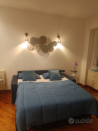 sleeps 6, composed as follows: three double bedrooms, one double bedroom, (Memory form Topper mattress) with walk-in closet and safe), one bedroom with a bunk bed and one pull-out bed, living room , a double sofa bed and a smart working area with free Wi-Fi. Sheets and towels included. Washer-dryer. Fully equipped kitchen.Fully equipped bathroom (soap, hairdryer, hair straightener, make-up kit, toothpaste) with shower, bidet. Furnished balcony for enjoying an aperitif or a good coffee with friends! Facing Parco delle Cave. Served by major supermarkets, greengrocers, pharmacies, bars, pizzerias, and restaurants. Nearby public transportation: bus 67 (100 meters) and MM1 Bisceglie subway (8 minutes' walk).Quick connections to the centre of Milan and the main Olympic venues.