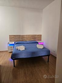 Appartamento C: camera con letto matrimoniale, angolo cottura e bagno.