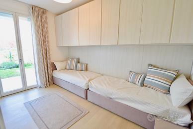 L'appartamento è situato al piano terra di un moderno residence ubicato in una zona centrale di Jesolo. Ampio soggiorno con cucina a vista, giardino perimetrale con terrazza per pranzare, due camere da letto con max. 5 posti letto, un bagno. Tv, clima, lavatrice, lavastoviglie, posto auto coperto.