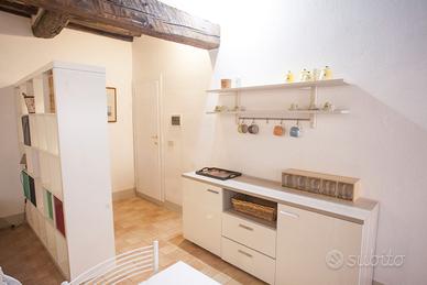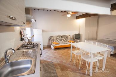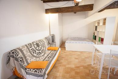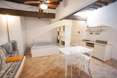 Grazioso monolocale, con ingresso indipendente, situato al primo piano di uno storico edificio del centro. Recentemente rinnovato è composto da una luminosa ed ampia stanza, con letto matrimoniale, divano letto matrimoniale, cucina con forno, zona pranzo e bagno con doccia.