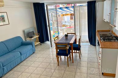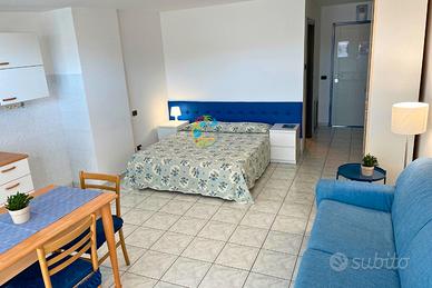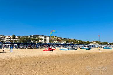 Accogliente monolocale, situato al quarto e ultimo piano di una palazzina residenziale sul lungomare centrale di Roseto, ti regalerà tutto il comfort che cerchi nelle tue vacanze. A soli 50 metri dalla spiaggia di sabbia fine, con fondali bassi ideali per i bambini, vicino alla pinetina attrezzata con giochi e aree relax. Composizione dell'appartamento: Ambiente unico con: - Letto matrimoniale - Divano letto matrimoniale (posti letto 3/4) - Angolo cottura attrezzato con tavolo e sedie - Bagno con doccia - Terrazzo vista mare attrezzato con tavolo, sedie e tendone parasole: l'angolo relax ideale per te! - Arredamento gradevole e funzionale Dotazioni e Comfort: - Aria condizionata inclusa - Ascensore - TV - Frigo con freezer - Forno - Lavatrice - Utensili da cucina - Carta sconti per attività e servizi locali - Terrazzo fronte mare con zona pranzo esterna - Pet friendly Il tuo amico a quattro zampe è il benvenuto! È ammesso un animale di piccola taglia con supplemento (euro 50/soggiorno). Nei pressi si trova una pinetina attrezzata, uno spazio rigenerante, di frescura, a pochi passi dal mare, ideale per le ore più calde della giornata. L'area è dotata di giochi per bambini, dove i più piccoli possono divertirsi in sicurezza mentre gli adulti si rilassano su panchine ombreggiate. Un equilibrio tra relax e svago per tutta la famiglia. Prenota ora e regalati una vacanza al mare a Roseto degli Abruzzi