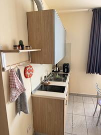 o Una cucina attrezzata con piastre a induzione, bollitore, friggitrice ad aria, microonde, stoviglie e utensili completi