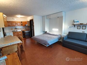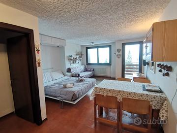 Disponibile appartamento monolocale per vacanze estive ed invernali formato da soggiorno con angolo cottura, letto matrimoniale, divano letto, bagno con doccia, balcone panoramico presso il Condominio Spolverino a Folgarida nella zona alta.
