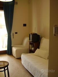 Dotato di impianto di aria condiazionata, tv, lavatrice, ferro da stiro, forno elettrico e garage privato sotto il complesso residenziale.