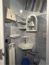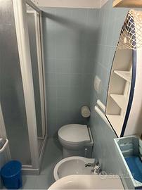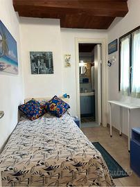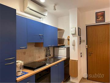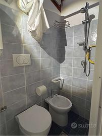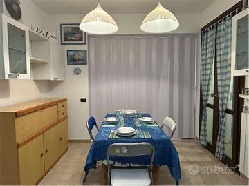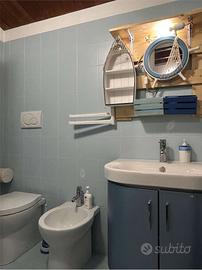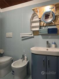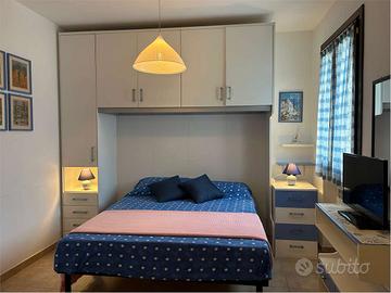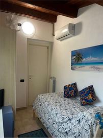 Questo appartamento sito al primo piano,con due climatizzatori presenta una cameretta con un lettino,soggiorno-cucina spaziosa con un letto matrimoniale separato da una porta scorrevole,due bagni.