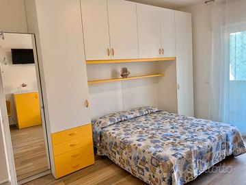 JESOLO a soli 50 metri dal mare, affitto MONOLOCALE appena ristrutturato, al secondo piano con ascensore, situato all'interno di residence con piscina a soli 50 metri dal mare! Composto da letto matrimoniale e letto singolo a scomparsa e con possibilità di aggiungere culla. La cucina è attrezzata di tutto, compresa lavastoviglie e microonde. Bagno con box doccia, lavatrice e asciugacapelli. Il monolocale è dotato di aria condizionata, televisione, cassaforte, dotazioni per pulizia giornaliera, posto spiaggia,posto auto condominiale e balcone privato dal quale si intravede il mare! Si accettano animali di piccola taglia con un supplemento di 30euro.