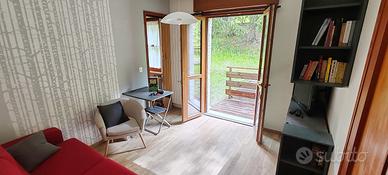 Monolocale a Bardonecchia Melezet, vicino a campo Smith ma posto in zona tranquilla, affacciato su boschetto condominiale, con giardino privato non recintato di 40 mq. Completamente arredato, 4 posti letto, due fissi in letto a castello, due in divano letto. Televisione, piastra a induzione e lavatrice. Posto auto riservato coperto, cantina. Non vorremmo animali. Stazione ferroviaria a un quarto d'ora a piedi, seggiovie accessibili a piedi. Affitto a mesi o a stagioni intere. Libero da aprile 2026