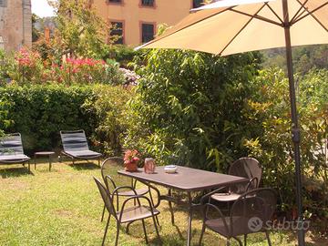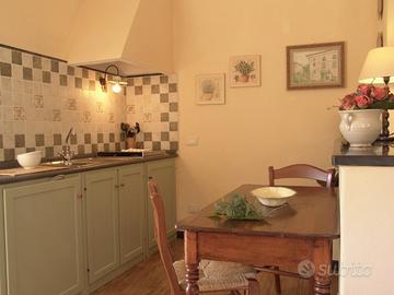 Grazioso monolocale in stile rustico, arredato con gusto e mobili antichi. Puo' ospitare 2 persone ed e' composto da una zona pranzo con angolo cottura, una zona notte con letto matrimoniale e un bagno con doccia. Si trova in un rustico a 50 m. dalla villa padronale ed ha un ingresso indipendente. Il giardino con vista panoramica e' attrezzato con tavolo e ombrellone, lettini e barbecue, dove e' possibile rilassarsi immersi nella natura.