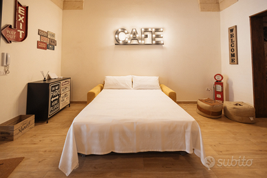 Appartamento sito in Lecce in zona centrale e ben servita. A pochi passi, troverete i principali siti della città: il Duomo, Piazza Sant'Oronzo e Piazza Mazzini. L'appartamento è dotato di Wifi, TV a schermo piatto, angolo cottura con frigorifero, forno, utensili da cucina e macchina da caffè. Per i soggiorni più lunghi, offriamo la possibilità di utilizzo di una lavatrice presente in un piccolo spazio esterno. Max 4pp. L'aeroporto di Brindisi-Casale dista 45 km e la stazione ferroviaria 2 km. PREZZO DA CONCORDARE IN BASE AL PERIODO E NUM. DI OSPITI.