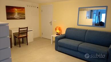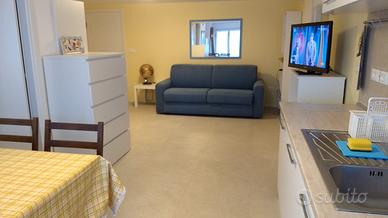 Tirrenia (PI), affittasi per la stagione estiva ampio monolocale ubicato al piano terra, climatizzato, divano letto matrimoniale, possibilità di terzo letto, angolo cottura attrezzato, servizio con doccia, piccolo ripostiglio, lavatrice, resede esclusivo nel giardino, ubicato nella pineta a pochi passi dal mare. No animali.