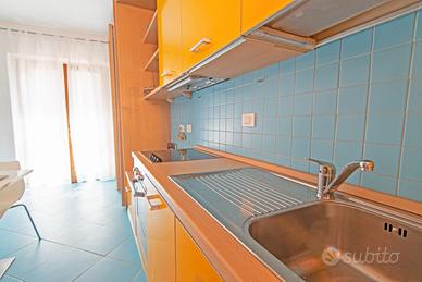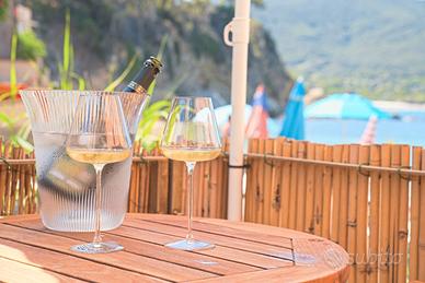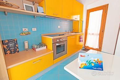 Si accede all'appartamento scendendo una comoda scaletta che porta alla spiaggia. Un unico ambiente ben arredato, dotato di un comodo divano letto matrimoniale, un angolo cottura attrezzato con 4 fuochi e un bagno spazioso e luminoso con box doccia. L'arredamento è moderno e la scelta dei colori lo rendono particolarmente accogliente. Da una porta finestra si accede all'esterno attrezzato con una pedana in legno direttamente sulla sabbia. Il parcheggio privato a 150 metri è una grande comodità.