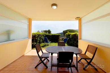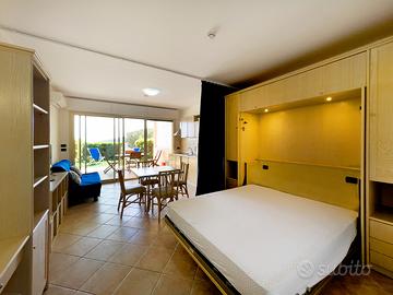 Monolocale 2/4 posti letto, spazioso e luminoso con porticato attrezzato e giardino, all'interno di in un complesso residenziale con piscina a circa 500 metri dalla spiaggia di Naregno.