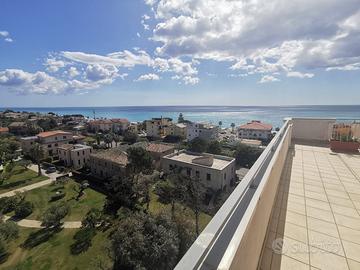 MONTEPAONE LIDO - VIA ALDO MORO. A POCA DISTANZA DAL MARE E DA TUTTI I SERVIZI. Affittasi attico panoramico al 7 piano di stabile con ascensore. Appartamento di 110 mq composto da ingresso soggiorno con divano letto e angolo cottura tre camere da letto due bagni e ampio terrazzo di 280 mq con vista panoramica sul golfo. Tot. 8/9 posti letto. Climatizzatori. Posto auto. STUDIO MEDDIS IMMOBILIARE