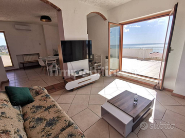 MONTEPAONE LIDO - VIA ALDO MORO. A POCA DISTANZA DAL MARE E DA TUTTI I SERVIZI. Affittasi attico panoramico al 7 piano di stabile con ascensore. Appartamento di 110 mq composto da ingresso soggiorno con divano letto e angolo cottura tre camere da letto due bagni e ampio terrazzo di 280 mq con vista panoramica sul golfo. Tot. 8/9 posti letto. Climatizzatori. Posto auto. STUDIO MEDDIS IMMOBILIARE