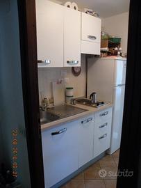 Dal soggiorno, con una porta in legno, entriamo nella zona notte, composta dal bagno (con doccia e aspiratore), separato a sua volta da un'altra porta che fa accedere a una stanza da letto. Questa camera, dotata di 4 armadi, eventualmente, si può dividere in due stanze (con tre letti singoli, più altri due estraibili) tramite un separé a soffietto (come quella del soggiorno). Dalla suddetta camera, si accede, con una porta finestra, al balcone, a sua volta collegato alla terrazza a L, dalla quale si rientra in casa, passando dal cucinotto (attrezzato di frigo grande e piastre a induzione). L'appartamento, dotato di Wi-Fi, Tv, telefono, grandi finestre, è molto luminoso e ventilato.